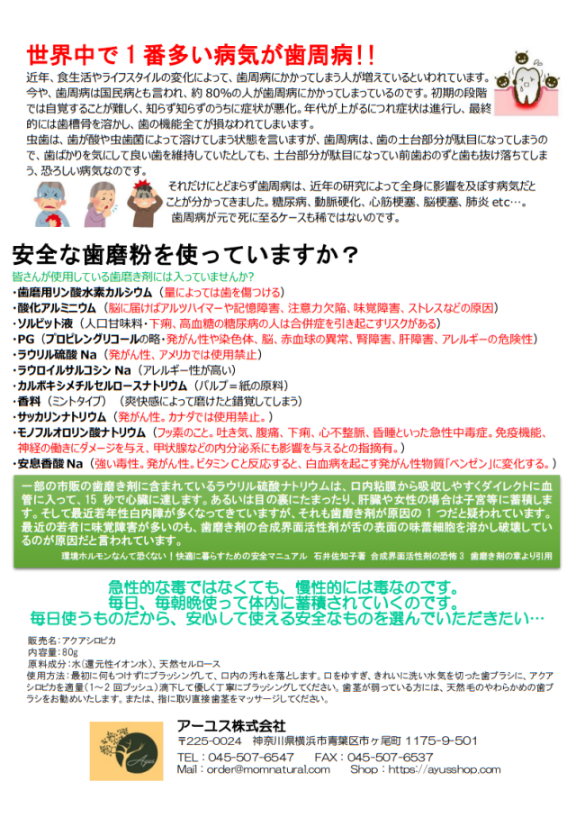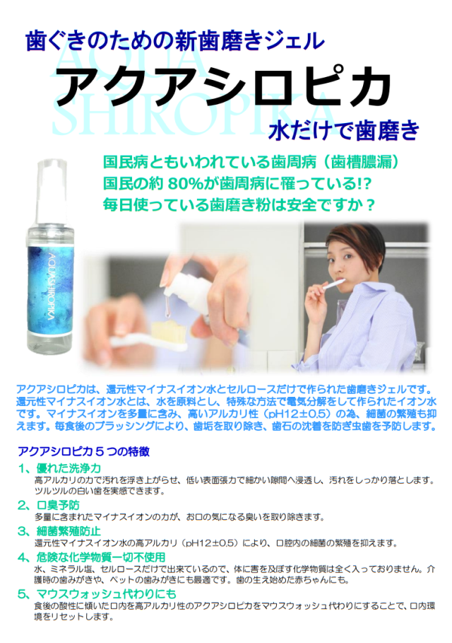 | 製品名: | はみがきジェル【アクアシロピカ】80g |