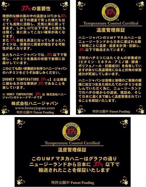 世界初ともなる国際輸送時・完全温度管理!品質、含まれる栄養素を損なうことのないように、理想的なハチの巣の温度である37℃以下を保ったまま、輸送されてきます。マヌカハニーは、アメリカのFDAにも承認を受け、医療目的でも用いられています。他に類を見ない天然の抗菌成分、酵素・ポリフェノールなどの栄養素が美容と健康をサポートします。