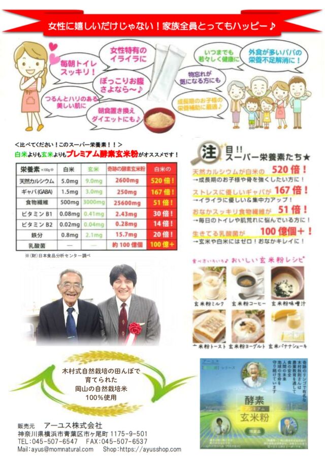 | 製品名: | 木村式自然栽培米100%使用【プレミアム酵素玄米粉・4g×30本】 |